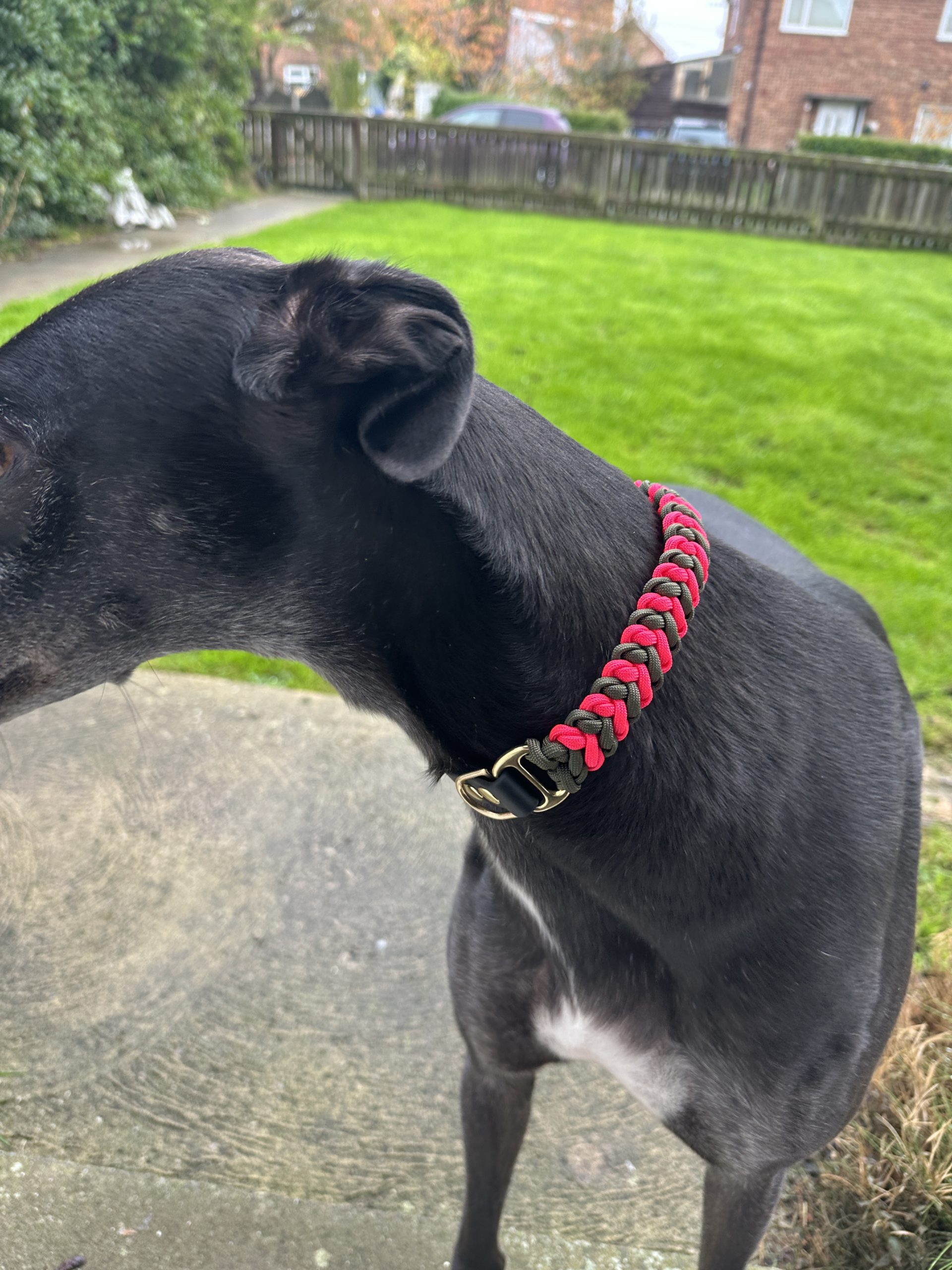 The Sir Barney adjustable Collar is available in the same classic colours as the regular Sir Barney collar, hand-braided for strength, style, and a touch of drama. Finished with a sleek Biothane adapter and sturdy gold hardware, it’s equal parts rugged and refined—just like your dog thinks he is.